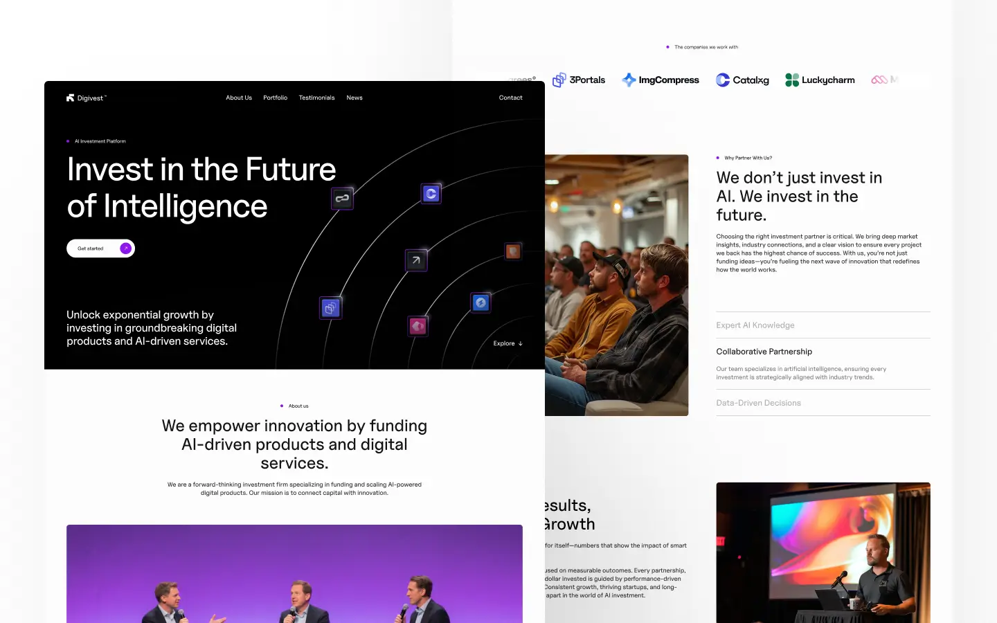 Digivest is a modern Webflow template designed for investment firms, venture capital companies, and digital funding platforms. With its clean layout, bold typography, and futuristic design, Digivest helps you showcase your portfolio investment.