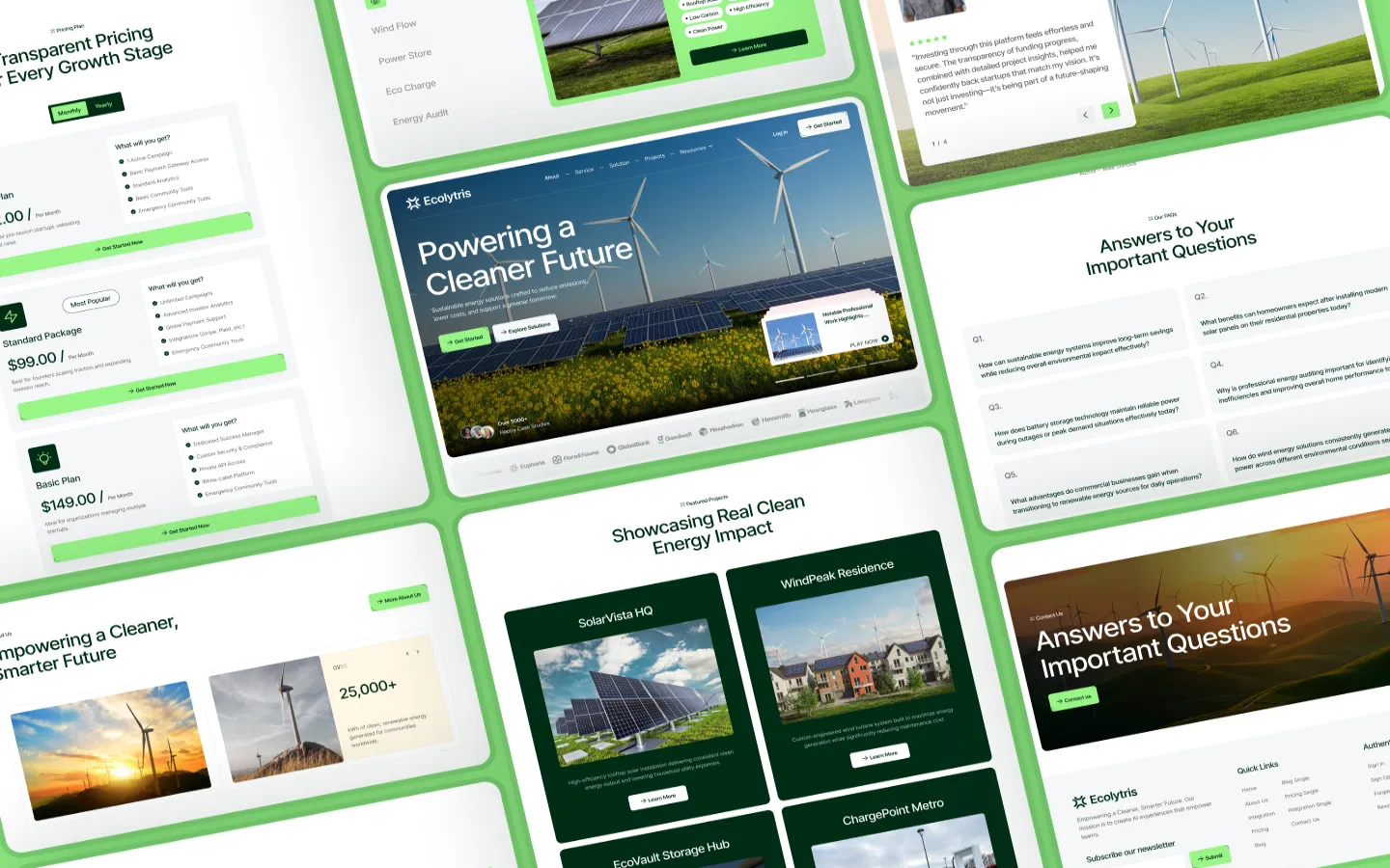 Included in your purchase is a fully editable Figma file, allowing you to easily adjust layouts, colors, and fonts to match your brand identity. Whether you’re a solar energy provider, wind energy firm, or sustainability consultant, Ecolytris is the perfect template to elevate your mission and demonstrate your commitment to a greener future.
