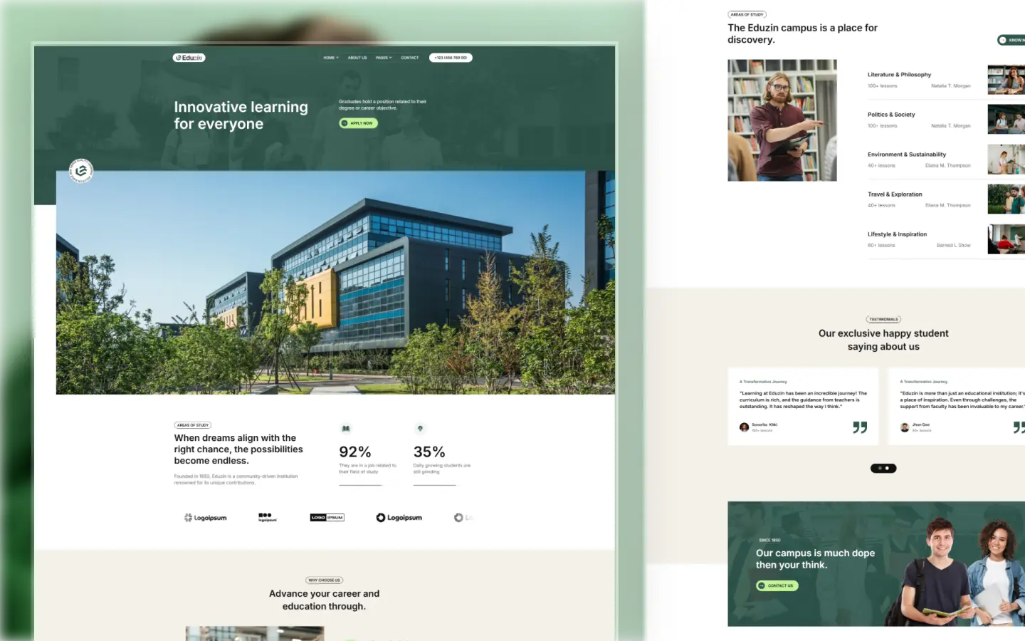 Empower the next generation with EduZin, a modern webflow template crafted for universities, colleges, and educational institutions. Designed for clarity and engagement, it offers a seamless platform to showcase courses, faculty, admissions.
