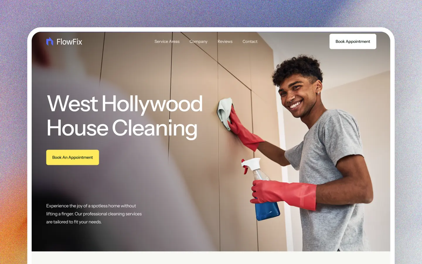 Flowfix works great on phones, tablets, and computers. It loads fast so you don't lose potential customers. The template is ready for search engines so people can find your cleaning business on Google.
