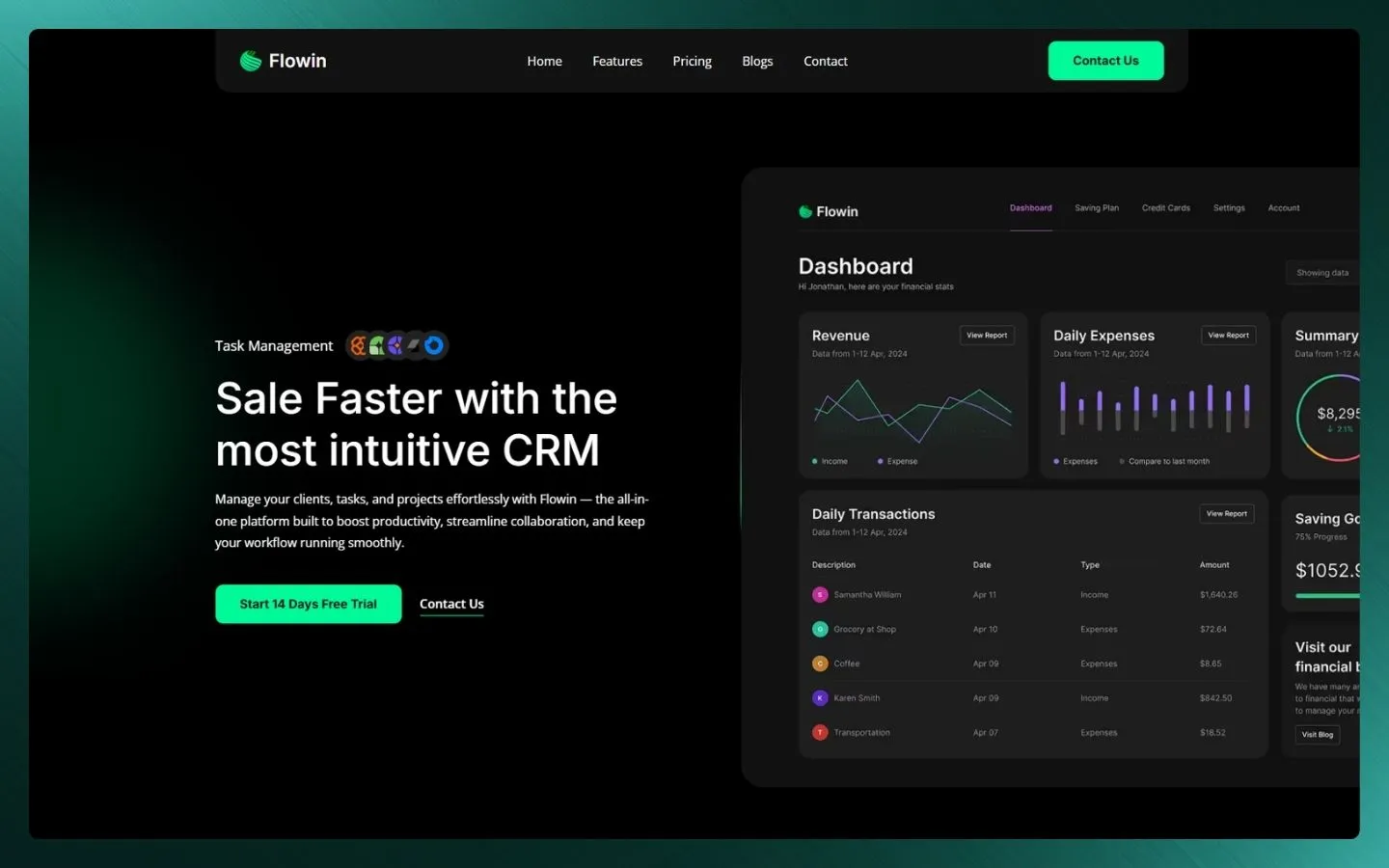 Flowin: Boost Productivity and Sales with the Ultimate CRM Webflow Landing Page.