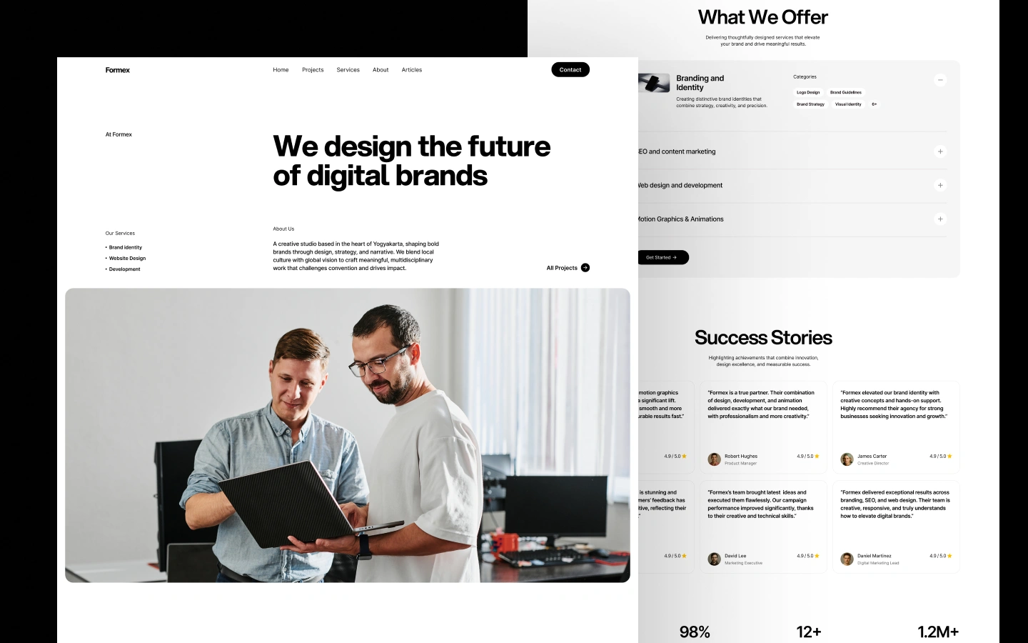 Meet Formex - A polished and elegant Webflow Agency website template. This template, which is perfect for designers, developers, photographers, and other creatives, elegantly and simply displays your work.