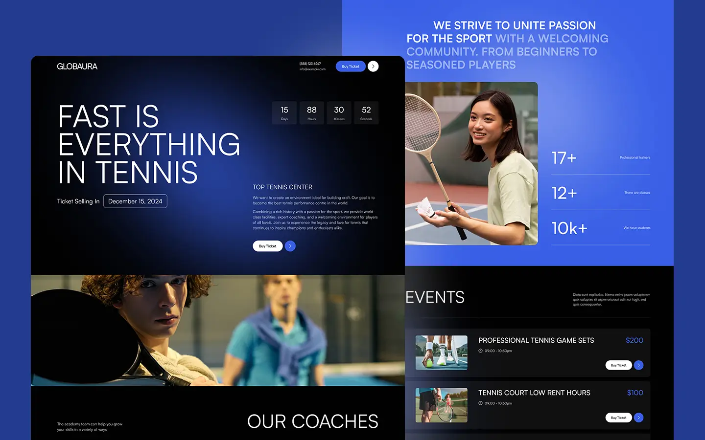 Globura is purpose-built for tennis tournaments, making it easy to promote schedules, player profiles, ticketing information, and key event details—all in a streamlined one-page format. Every section is crafted to keep sports fans informed and excited.