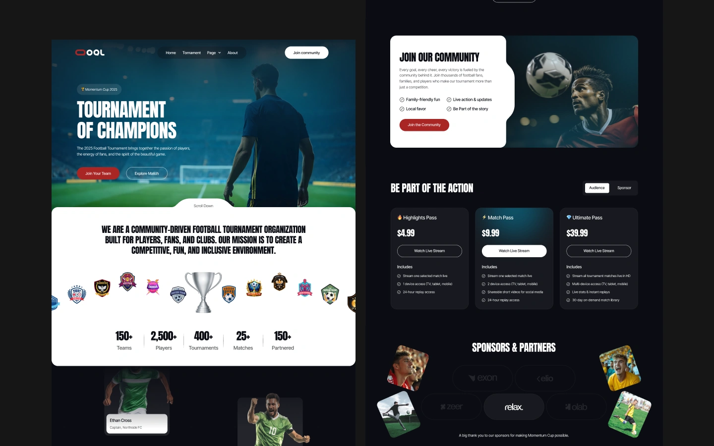 Goal is a dynamic and modern Webflow template built for football tournaments, sports events, and athletic organizations. Designed to capture energy and excitement, it helps you showcase teams, match schedules, results, and event stories.
