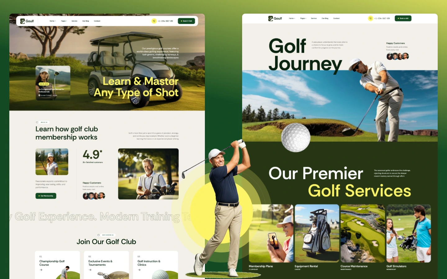 Goulf is a premium Webflow template for golf courses, clubs, academies, trainers, and sports resorts. Featuring elegant design, CMS content, booking pages, and fast, SEO-ready performance.