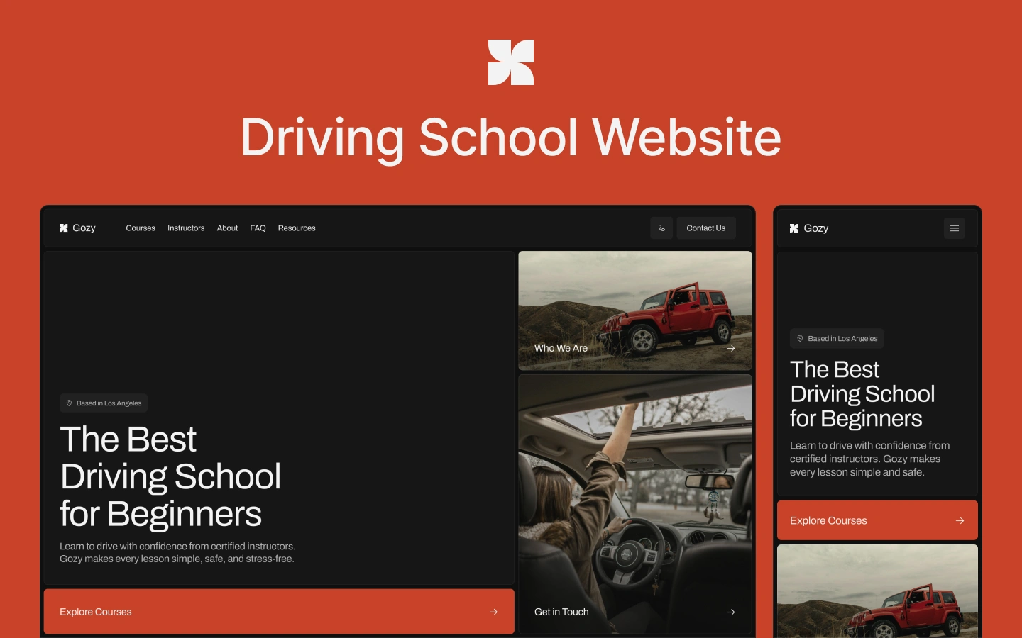 Gozy is a clean, modern website for driving schools to showcase courses, highlight instructors, and build trust through testimonials. Bold visuals and intuitive layouts make promoting lessons and enrolling students easy.