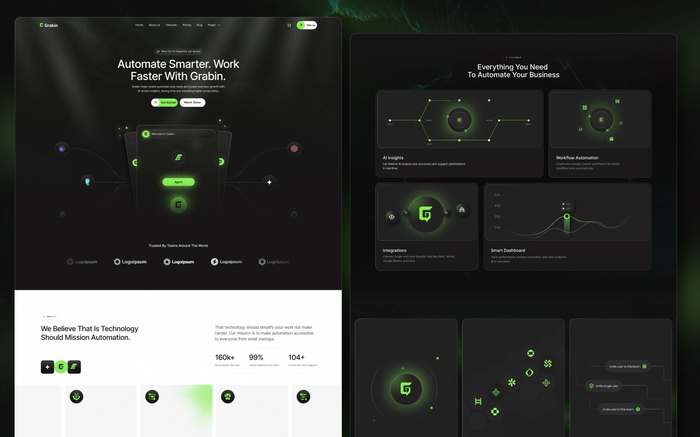 Grabin - AI Powered Automation Saas Webflow Website.
