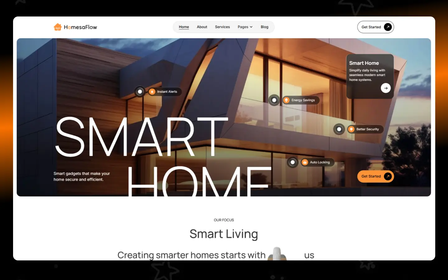 HomesaFlow suits for smart home automation, security systems, CCTV security, cybersecurity, personalized safety programs, artificial intelligence, security cameras, remote home control, video surveillance, and security system provider websites.
