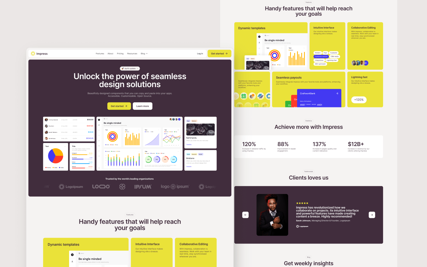 Introducing Impress, the ultimate Webflow template designed for SaaS companies ready to make a lasting impact. With its sleek design and seamless functionality, Impress offers everything you need to showcase your software solution with style and sophistication.