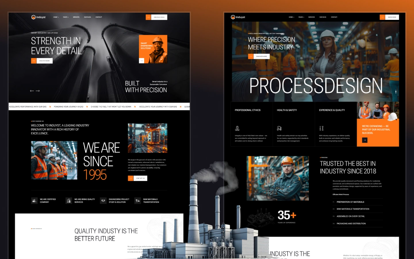 Induyst is a modern, professional Webflow template designed for industrial businesses, factories, manufacturing plants, and engineering companies. Built with a strong corporate layout and bold visual structure, it helps businesses in industry, construction, energy, and manufacturing showcase their services, machinery, and projects with confidence.