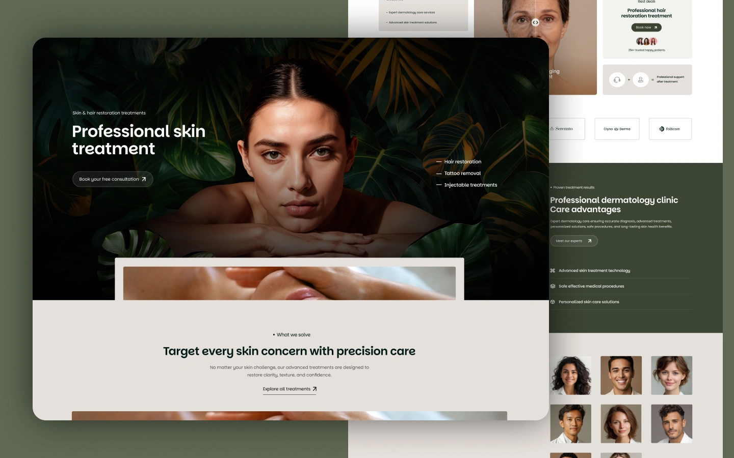 Premium Beauty & Skin Care Webflow template for clinics and spas. Features 3 homepages, service CMS, and treatment portfolios. Optimized for aesthetic clinics, dermatology, and wellness centers with a high-conversion booking focus.