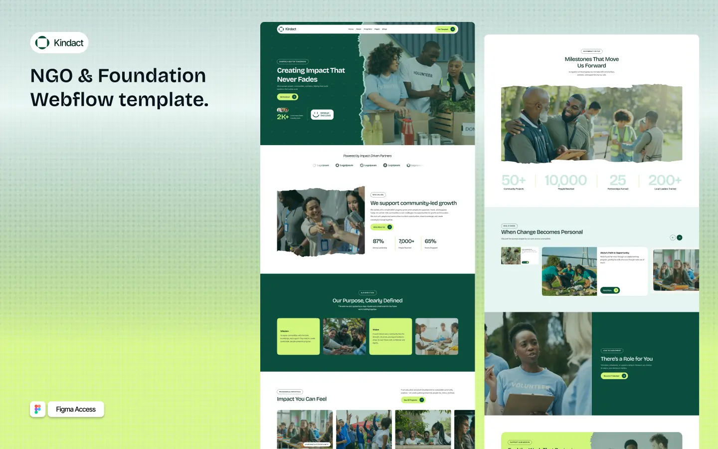 Kindact is a modern NGO & foundation Webflow template built to empower people, communities, and ideas—helping organizations create lasting impact, strengthen community foundations, and build solutions that truly endure.
