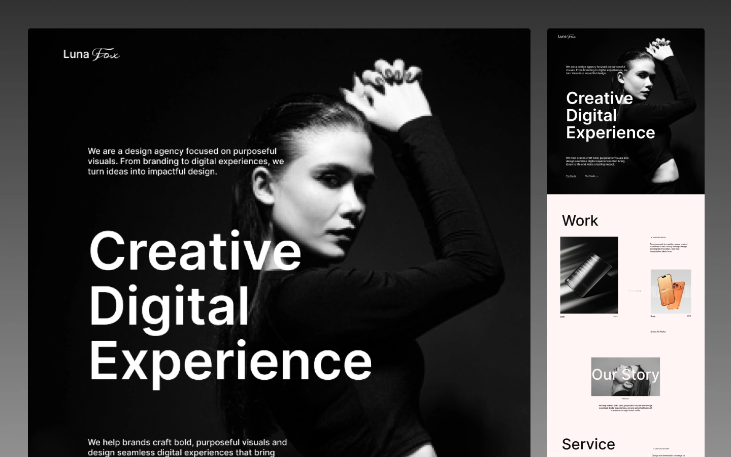 Unleash your agency's full potential with LunaFox, the groundbreaking Webflow template meticulously crafted for creative agencies aiming for digital excellence. Designed from the ground up to reflect clarity, adaptability, and cutting-edge aesthetics, LunaFox provides a robust and modular foundation. Elevate your online presence, captivate your audience, and showcase your unique story with a platform built for lasting impact.