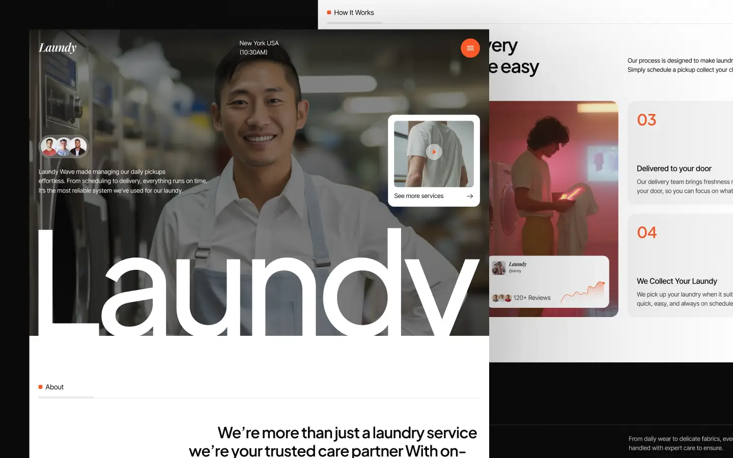 Laundy is a sleek Webflow template for laundry, washing, and dry cleaning businesses, designed to showcase laundry services, professional washing solutions, and dry cleaning offerings with seamless online booking.