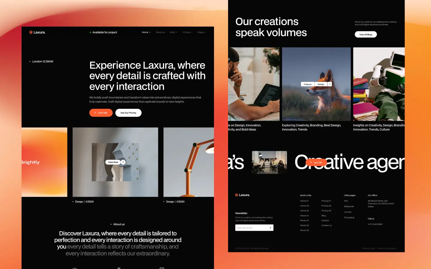Laxura Studio is uniquely crafted to meet the needs of service-based sectors that depend on portfolio presentation, showcasing expertise, lead generation, and brand credibility. Whether you're offering SEO, PPC, social media marketing, branding, UX design, app development, or custom website solutions, this template provides dedicated sections tailored to your industry workflows.