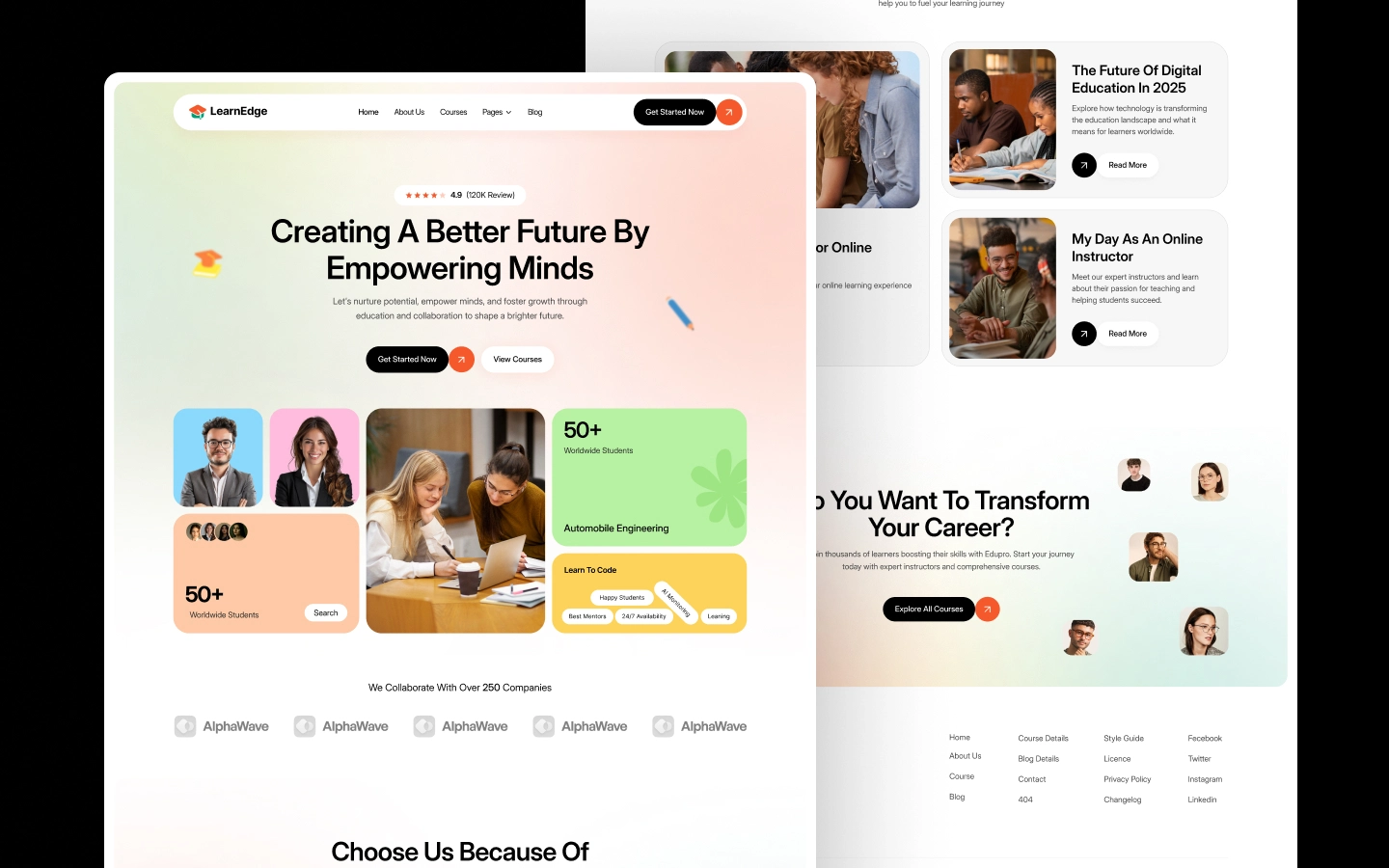 LearnEdge is a modern education Webflow template for online courses, coaching, and training programs. With responsive layouts and easy customization, it helps you deliver content clearly and professionally.