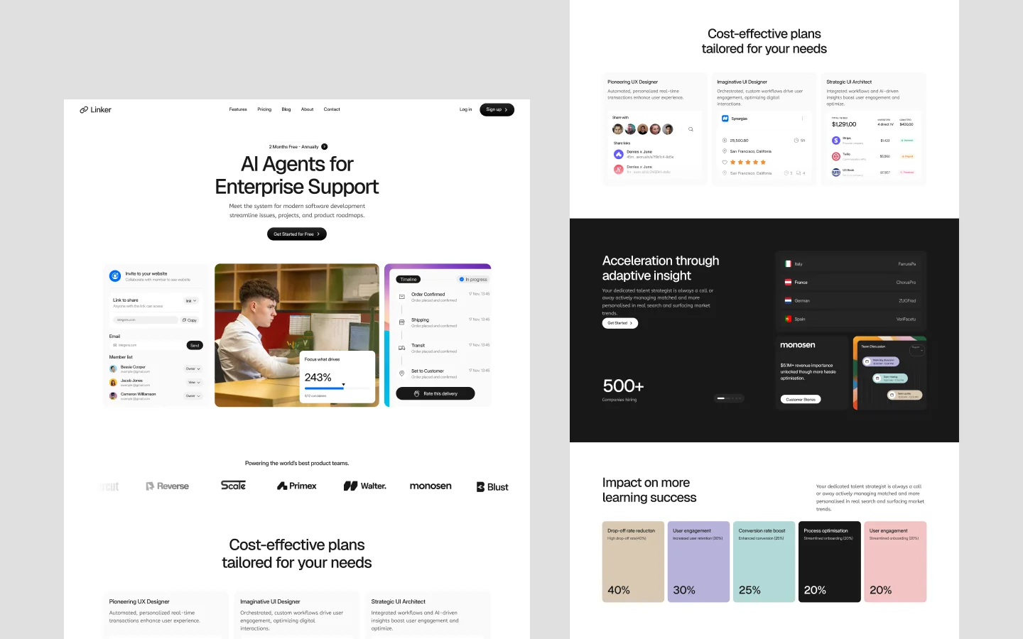 Linker is a premium Webflow template designed for AI startups and enterprise SaaS. Featuring a clean, modern interface and ready-to-use dashboard layouts, Linker helps you showcase complex software and launch high-converting sites faster.