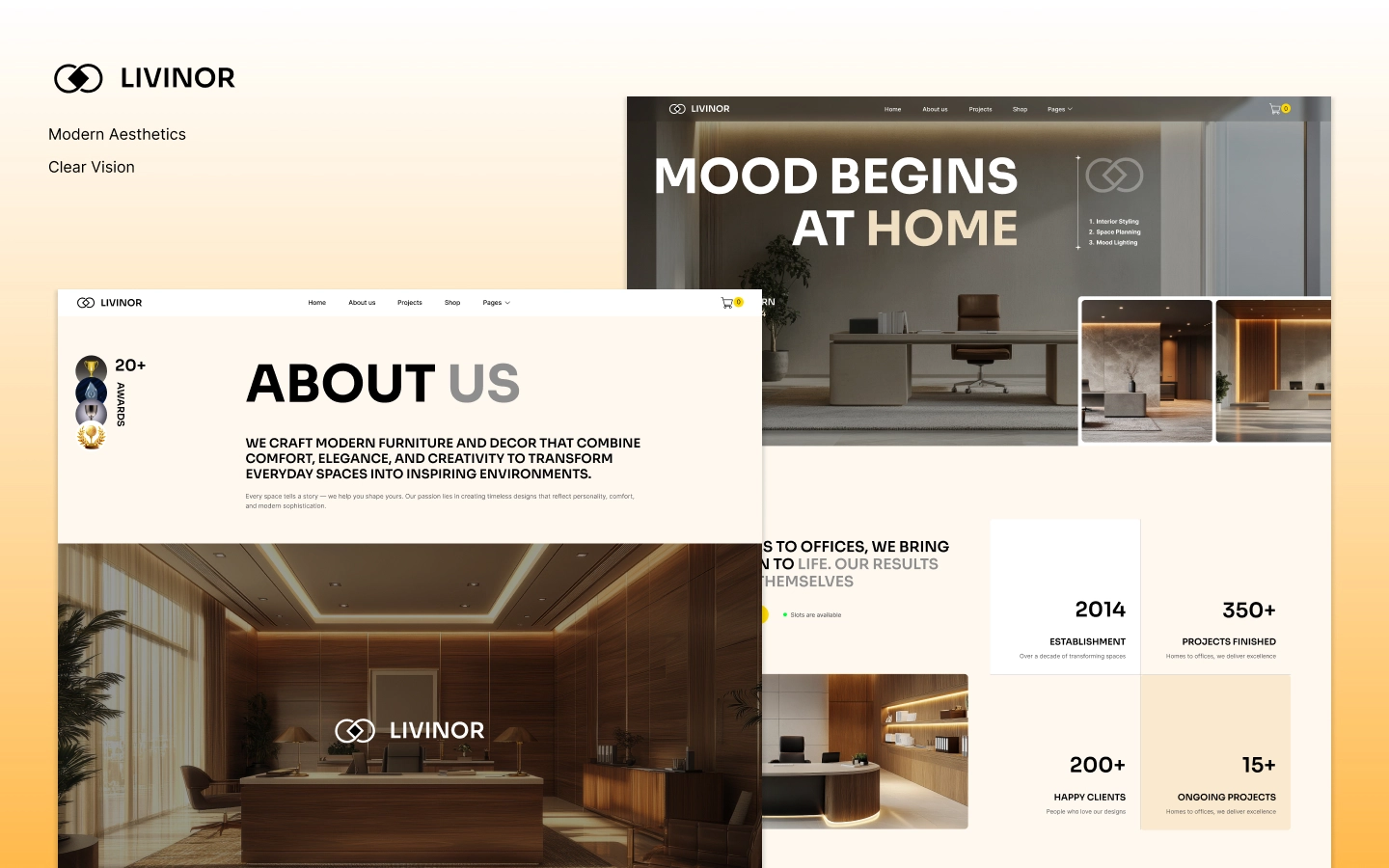 With warm visuals, clean layouts, and refined typography, Livinor helps you showcase interior projects, services, products, and brand stories through a professional and immersive web experience.