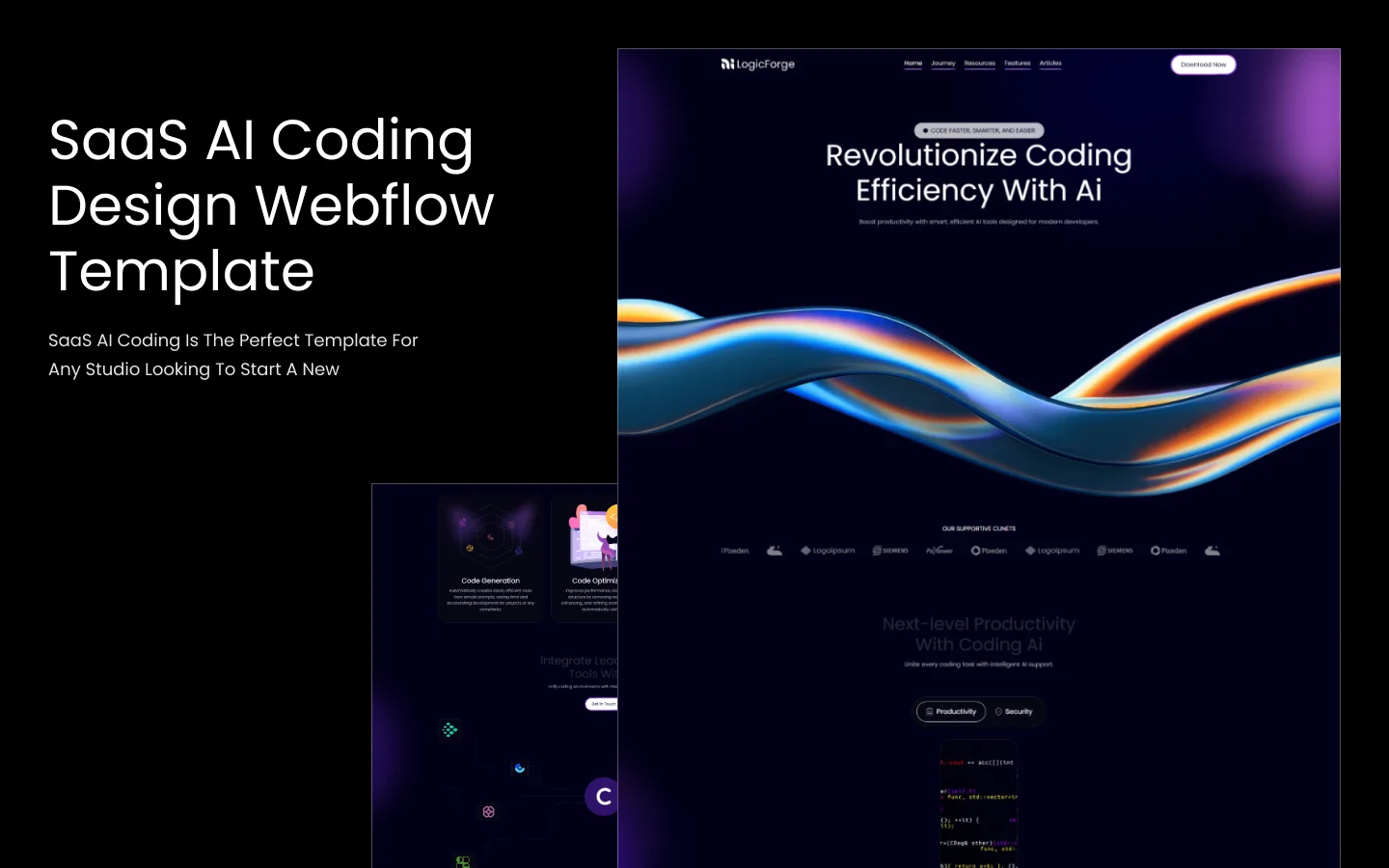 Looking for a premium Webflow Template to build a professional website for your SaaS AI Coding platform or tech studio? Your search ends here! Introducing LogicForge, our latest Webflow Template crafted exclusively for AI-powered software, automation tools, and coding-focused businesses. It features a sleek, modern, and high-quality design tailored to highlight your product features, workflows, and intelligent solutions in the SaaS AI industry.