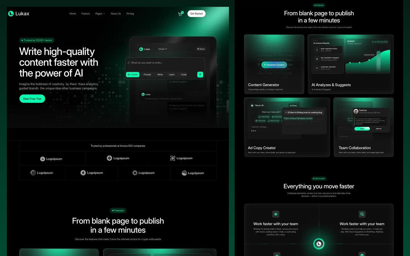 Whether you are launching an AI product landing page, SaaS startup website, or Agency site, Lukax provides a flexible and powerful structure that makes building your website fast and simple.