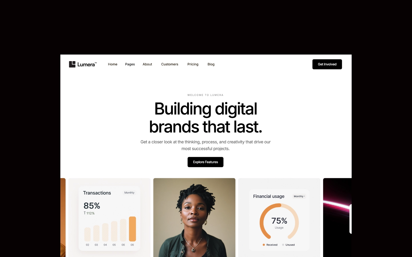 Every part of Lumera, the Webflow template and UI kit, is designed to adapt to your brand. Minimal foundations are paired with expressive gradients and depth animations—bold, never busy.