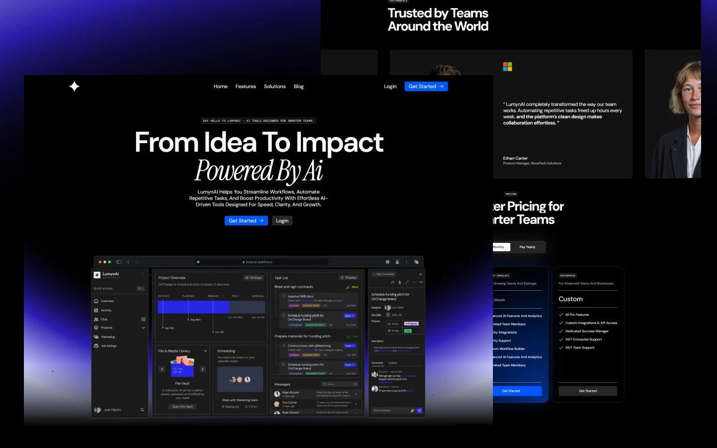 Lumyn is a modern dark-theme Webflow template built for startups, SaaS companies, and tech-driven teams who need more than just a landing page — they need a platform that communicates value, builds trust, and converts visitors into users.