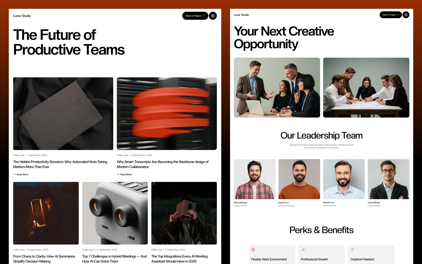 Lunar Studio is the ultimate elegant portfolio for creative agencies and studios. Showcase projects with powerful CMS, dark-mode design, and smooth interactions. Includes a Free Figma File and 1-hour customization service for a flawless launch.