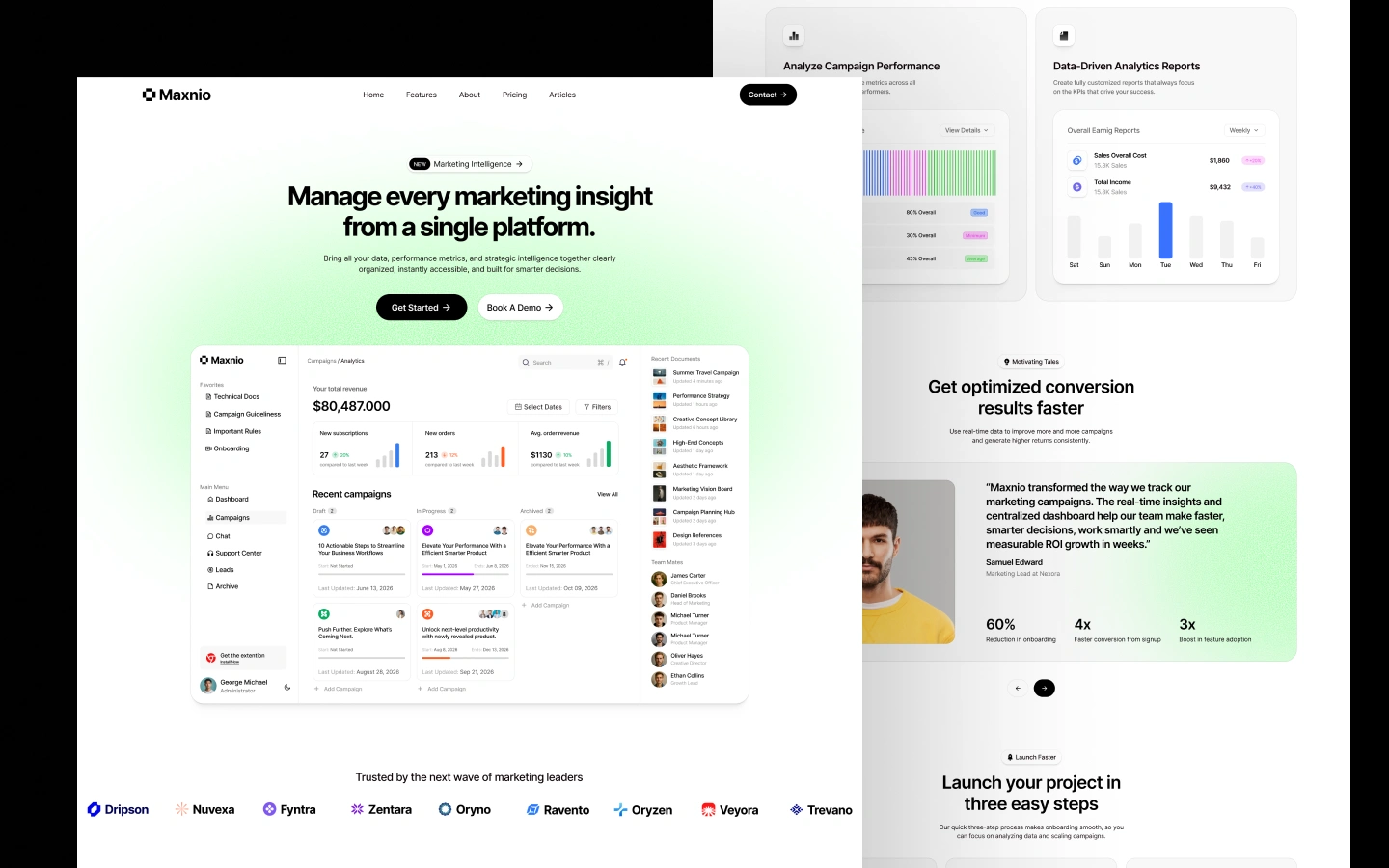 Maxnio is a powerful and modern Webflow SaaS template designed for startups, tech companies, and digital platforms looking to make a bold impression. With a sleek design, intuitive navigation, dynamic animations, and fully responsive layouts, Maxnio helps you build a high-converting website with ease. Whether you're launching a new product or scaling your business, this template provides the perfect foundation for growth and success. 🚀