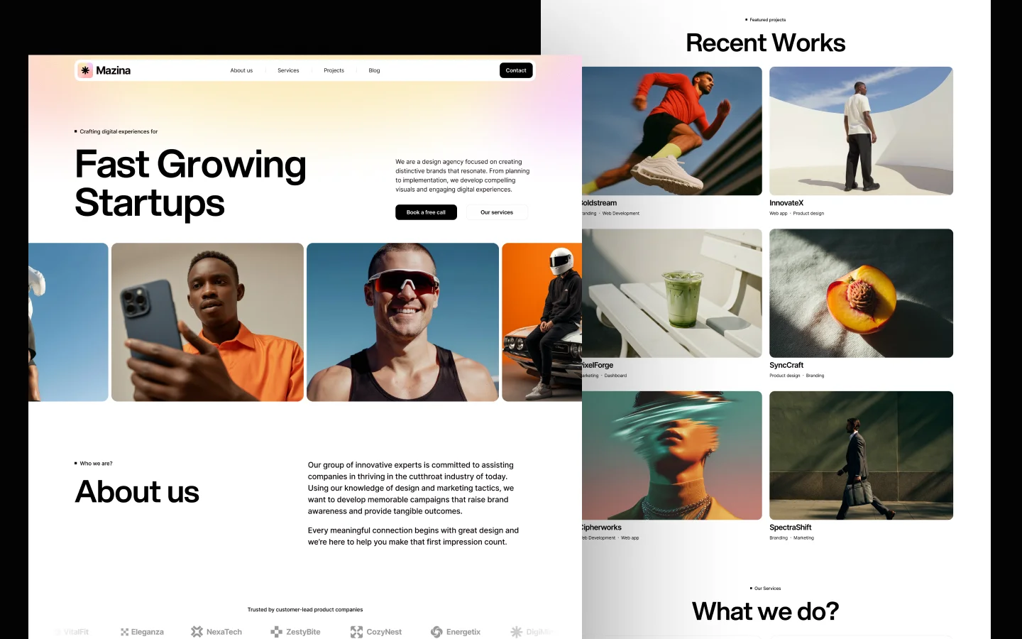 Mazina is a modern Webflow template designed specifically for freelancers, agencies, and creative businesses. With its stylish design and adaptable layout, it’s ideal for presenting your services and portfolio.