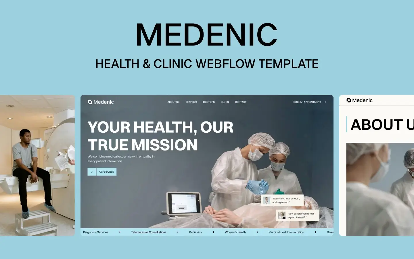Medenic is a clean Webflow template designed for clinics, hospitals, and healthcare providers. Showcase services, introduce doctors, publish health blogs, and let patients easily book appointments no coding required.