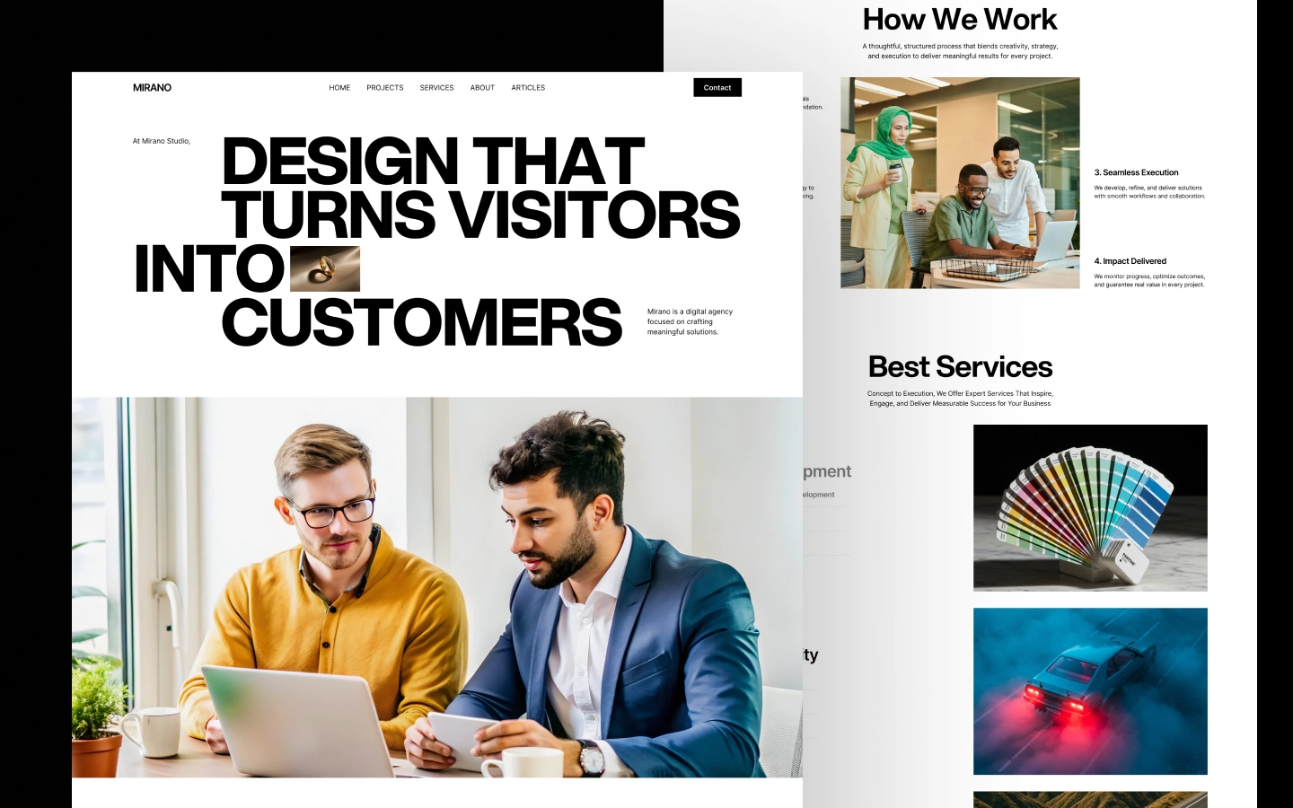 Meet Mirano - A polished and elegant Webflow Agency website template. This template, which is perfect for designers, developers, photographers, and other creatives, elegantly and simply displays your work.