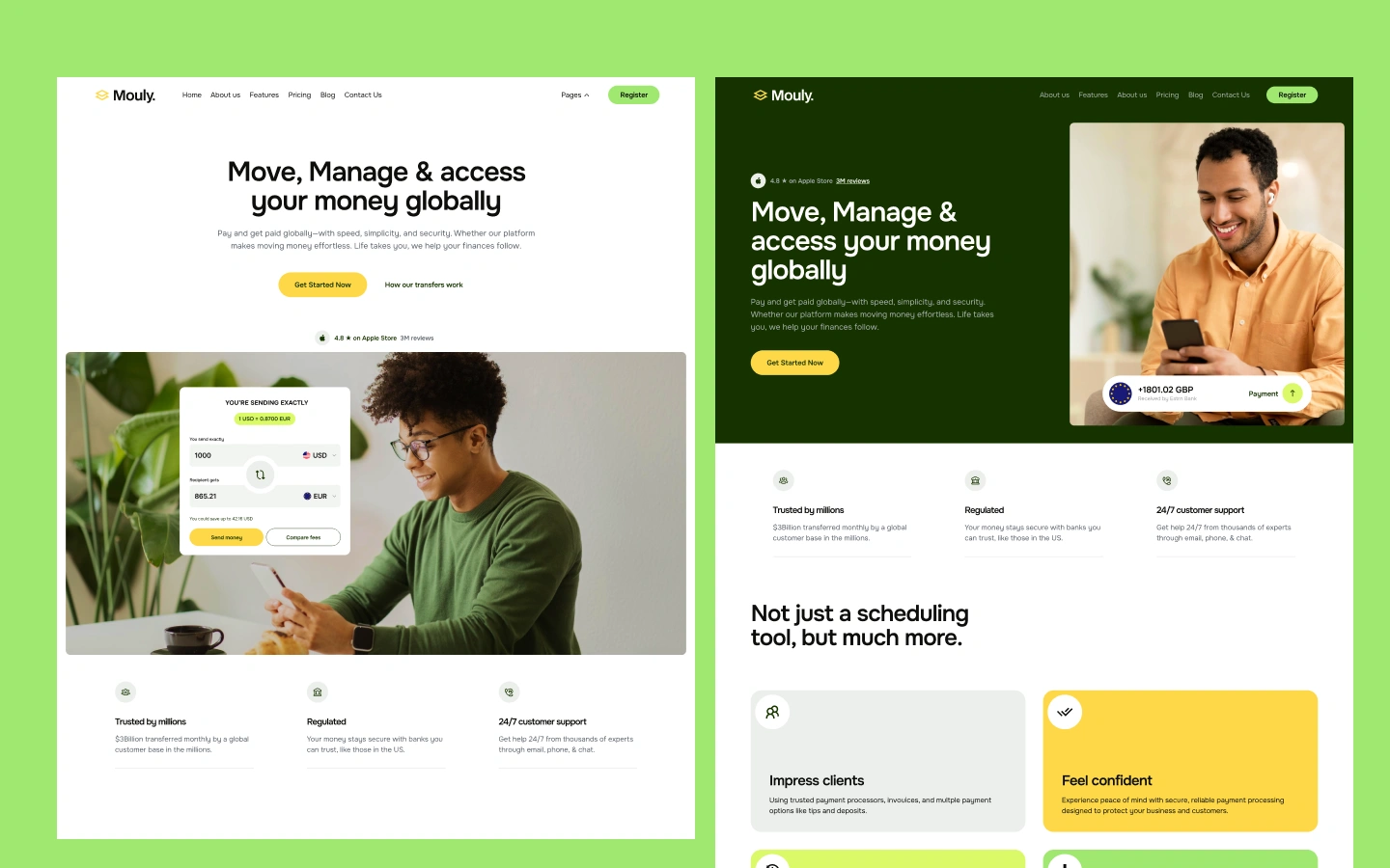 Mouly - Webflow template for fintech SAAS and Digital banking. With a modern design & intuitive layout, it helps you showcase financial services, features, and solutions professionally, making it perfect for an innovative startup & financial company.