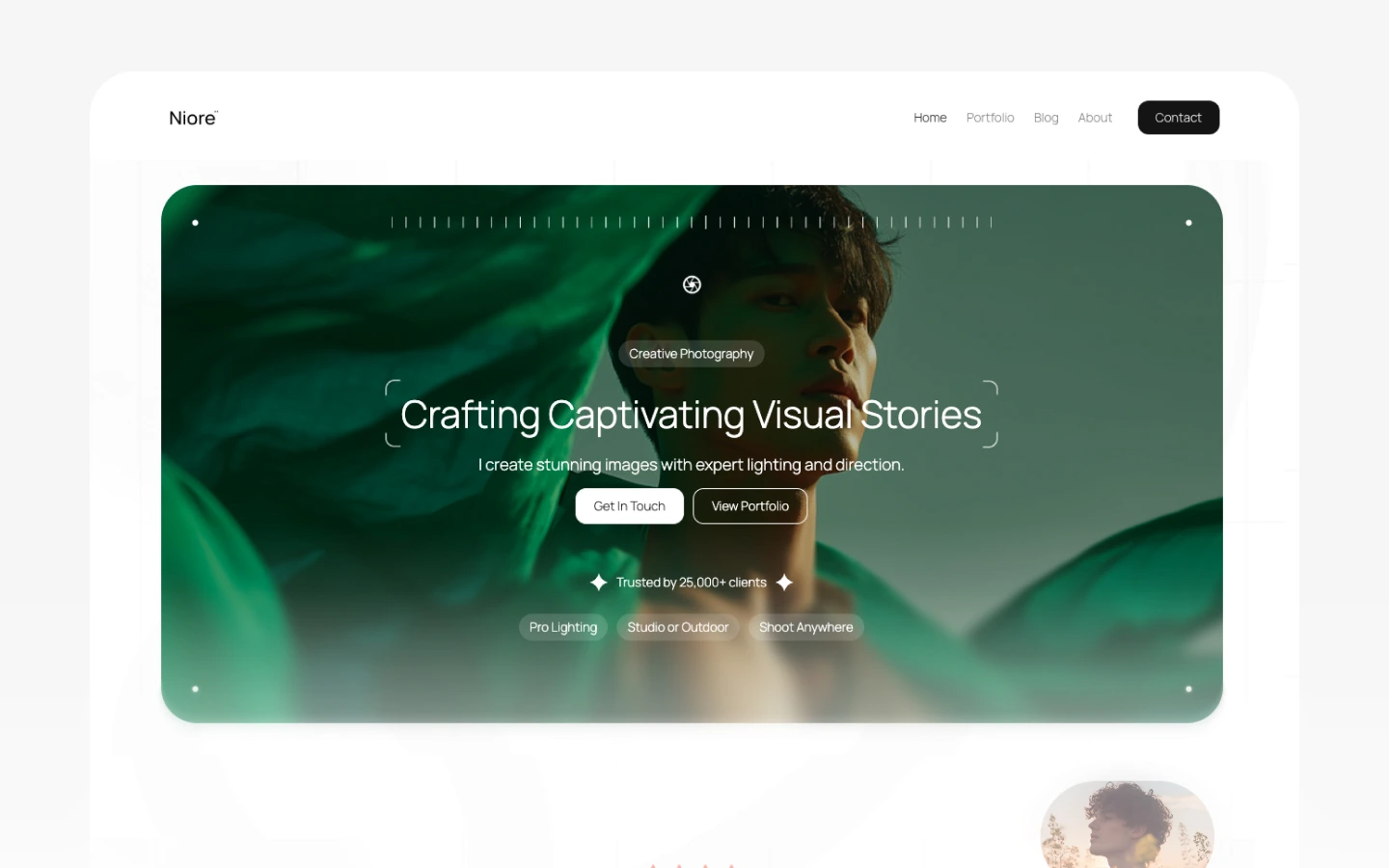 Perfect for independent photographers, creative agencies, or visual artists — Niore helps you build a polished online presence that feels authentic and cinematic. Every image tells a story, and every page reflects your creative identity.