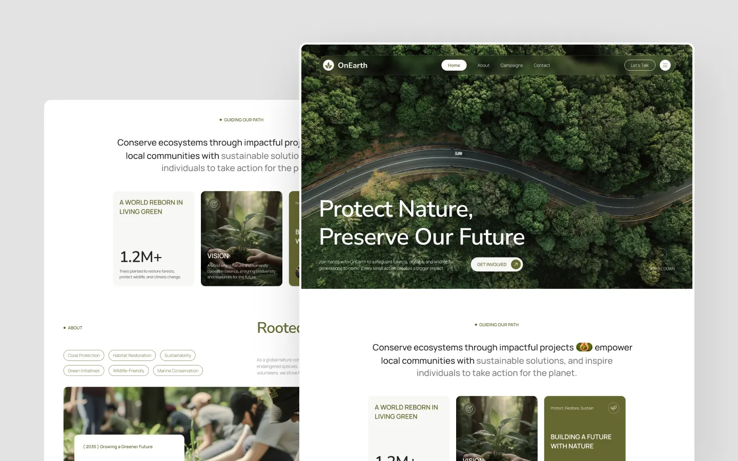 OnEarth embraces a nature-inspired design language that reflects environmental values while maintaining a clean and professional interface.