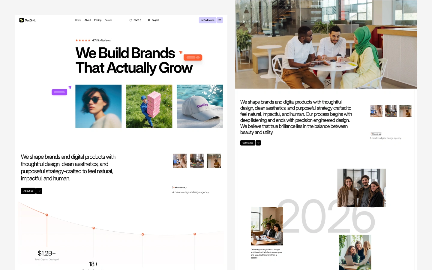 Designed for branding agencies, digital studios, marketing teams, and creative professionals, Outgrid combines modern aesthetics with strategic UX to help you present your services, showcase your portfolio, and convert visitors into clients.