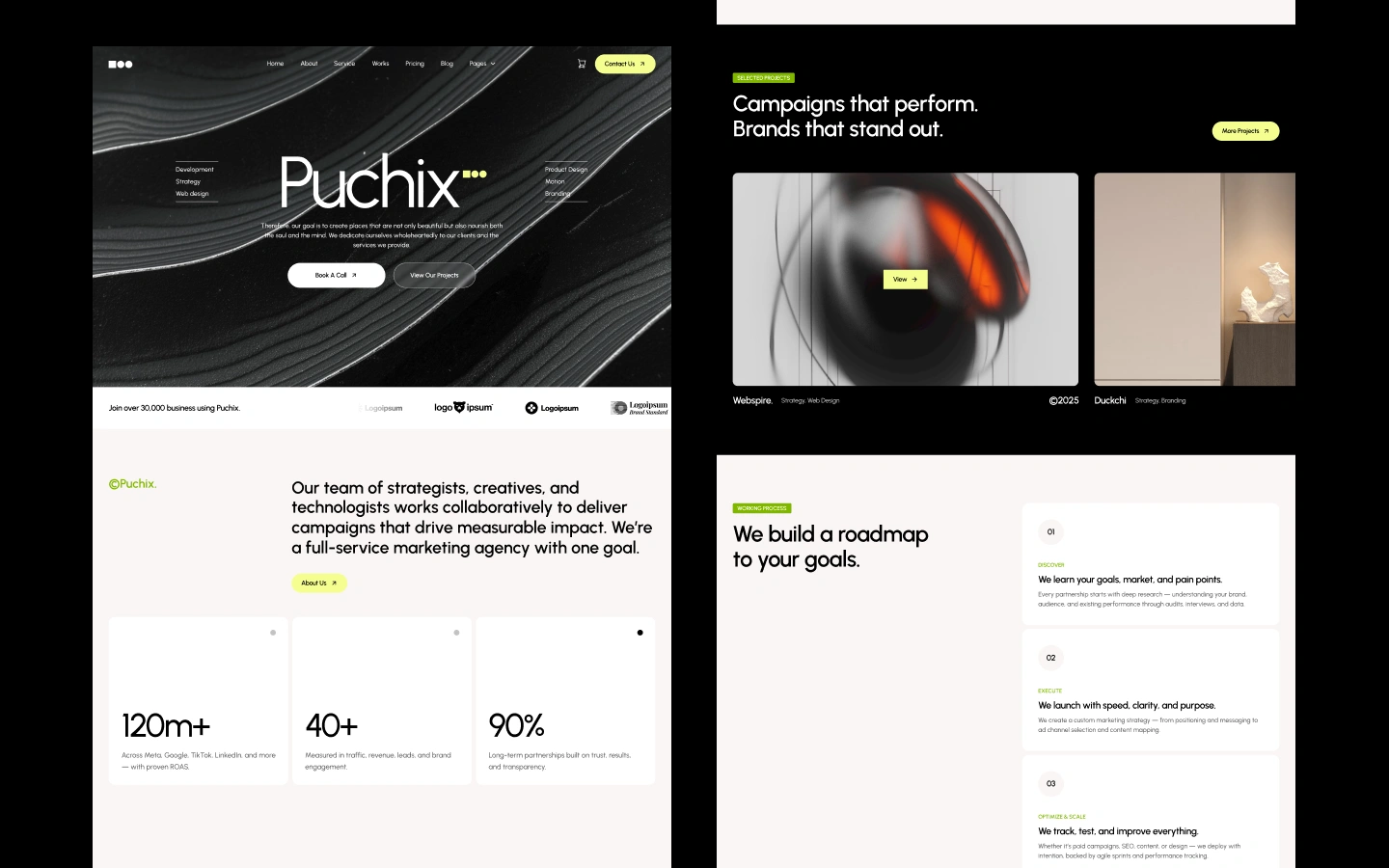Puchix Studio is a sleek, high-impact Webflow template crafted for marketing agencies, creative studios, and digital service providers who want to present their work with confidence and clarity. Designed with bold typography, clean layouts, and smooth interactions, it delivers a premium user experience that elevates your brand from the first moment visitors land on your site.