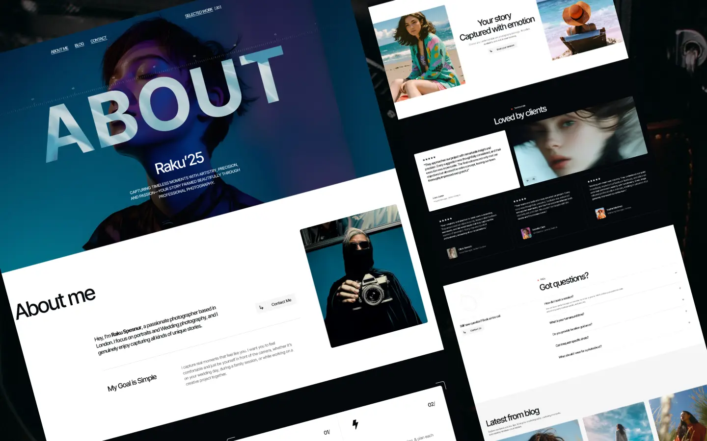 “Ra’ku Spesnur” is a premium Webflow photography template with a modern, cinematic design, smooth animations, and CMS-powered portfolio & blog — ideal for photographers and creatives looking to showcase their work and attract high-end clients.