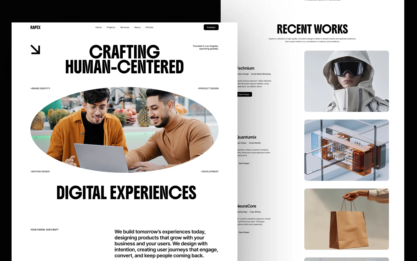 Rapex is a modern Webflow template for freelancers, agencies, and creative teams. Featuring a refined design and flexible layout, it’s perfect for highlighting services and portfolios while making it easy to build a polished, fully responsive