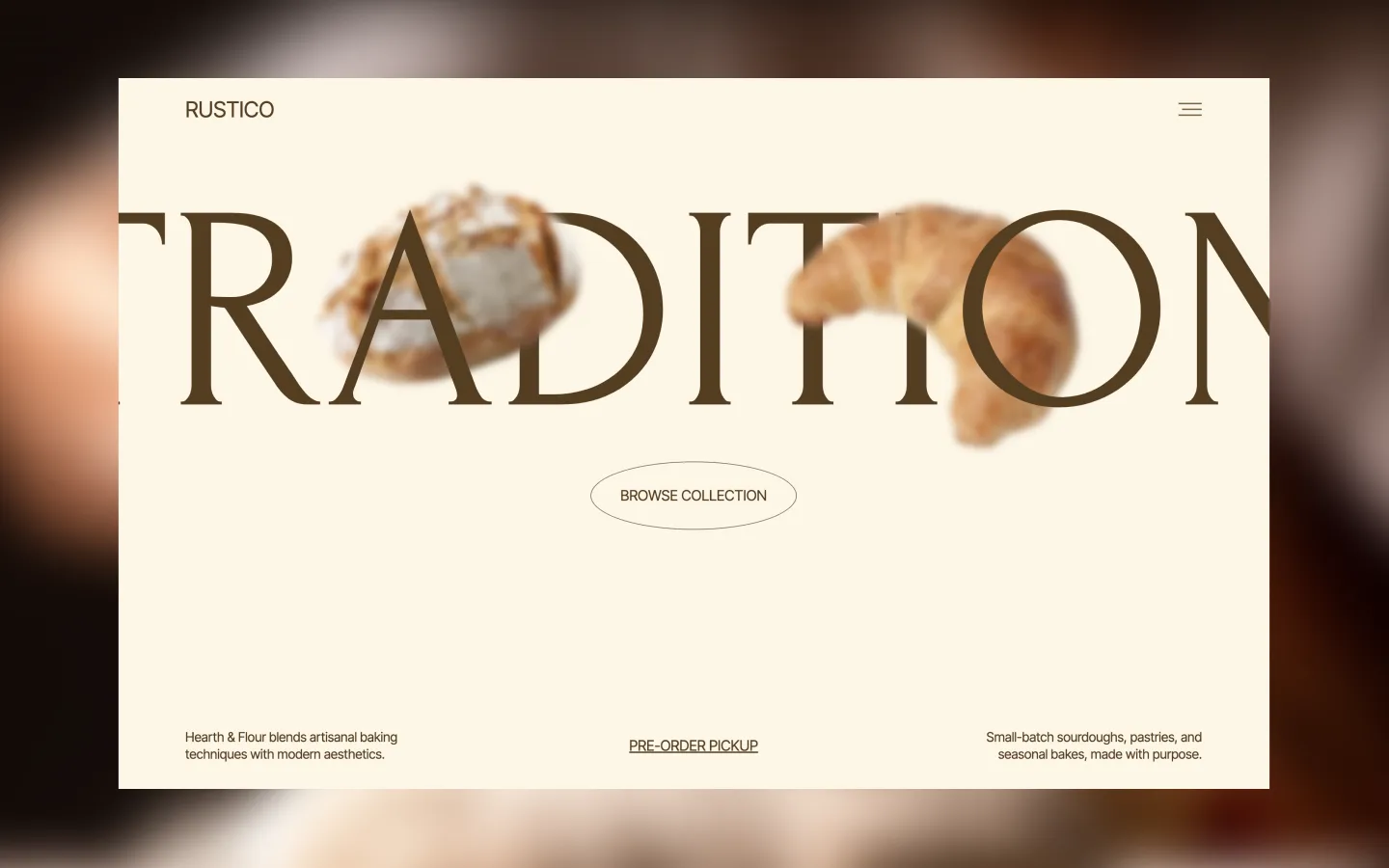 Rustico is a warm and elegant Webflow template crafted for artisan bakeries and cafés. Showcase your fresh breads, pastries, and handmade delights with stylish layouts, rich textures, and inviting typography that capture the essence of rustic charm.