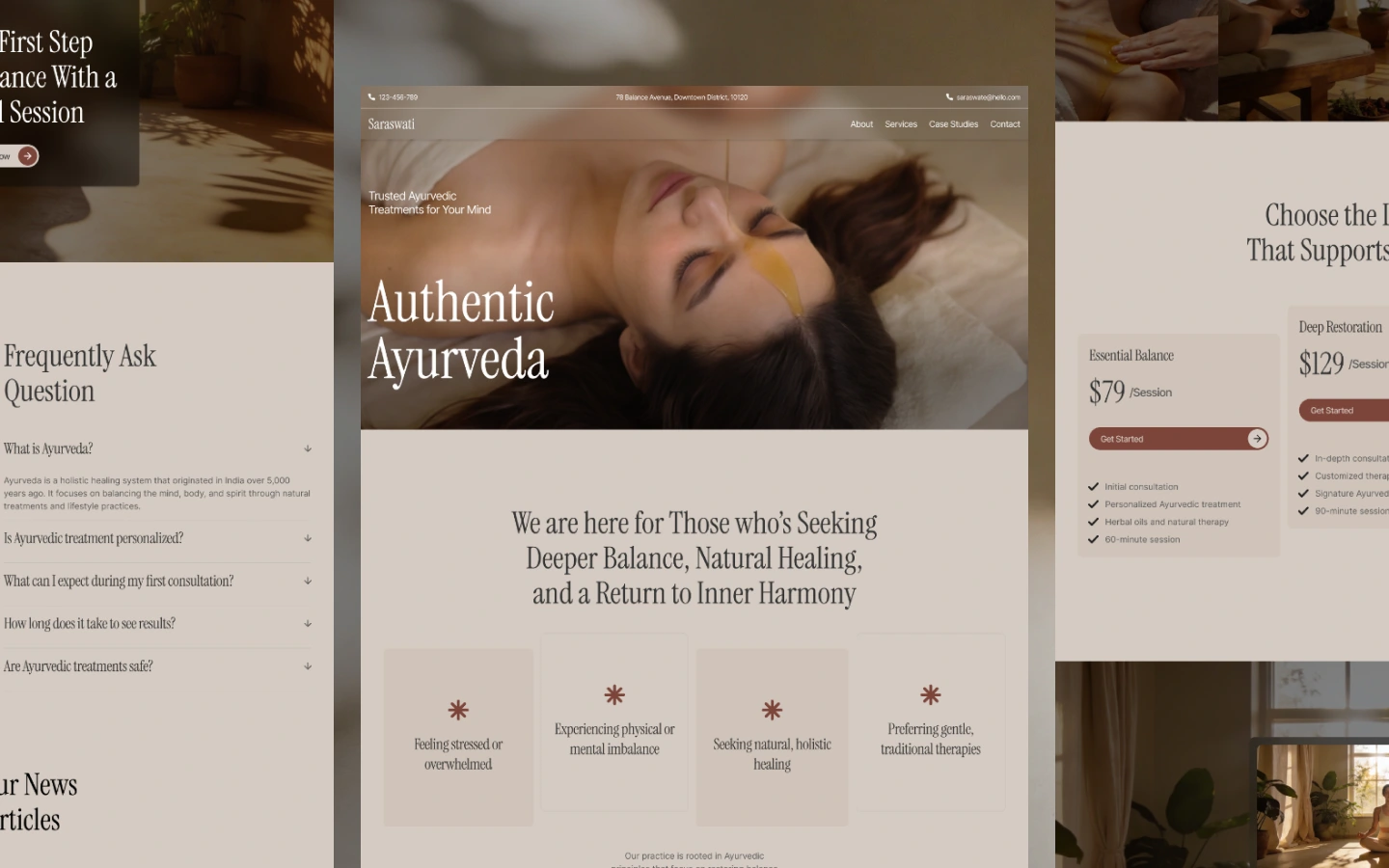 With 3 homepage variations, 3 about page layouts, and 3 services page layouts, along with CMS powered content collections, Saraswati makes it easy to adapt the website to different wellness brands from minimal and clinical to warm and spiritual all without writing a single line of code.