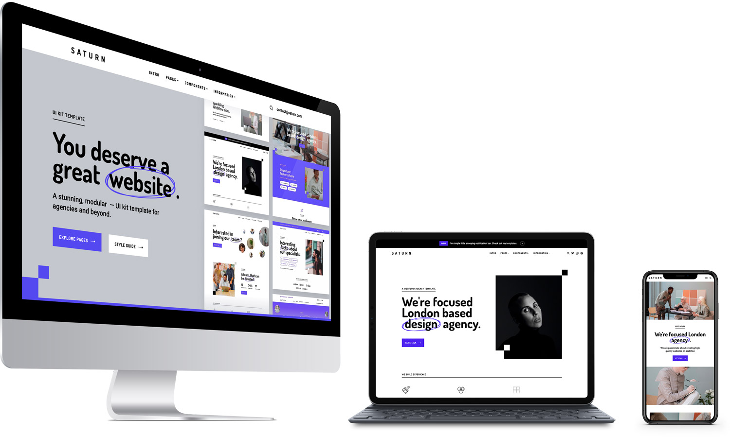 Saturn is a stunning Webflow UI Kit template packed with everything you need to make a perfect website for your digital agency, or startup — without any effort.