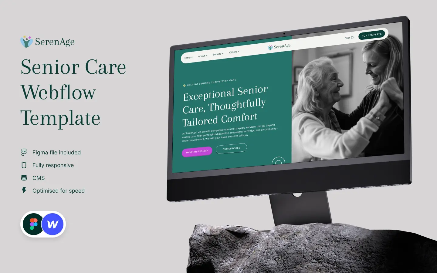 Looking for the ultimate Senior Care webflow template? Meet SerenAge – your go-to professional Webflow template for launching stunning websites with a variety of features included for Senior Care Service