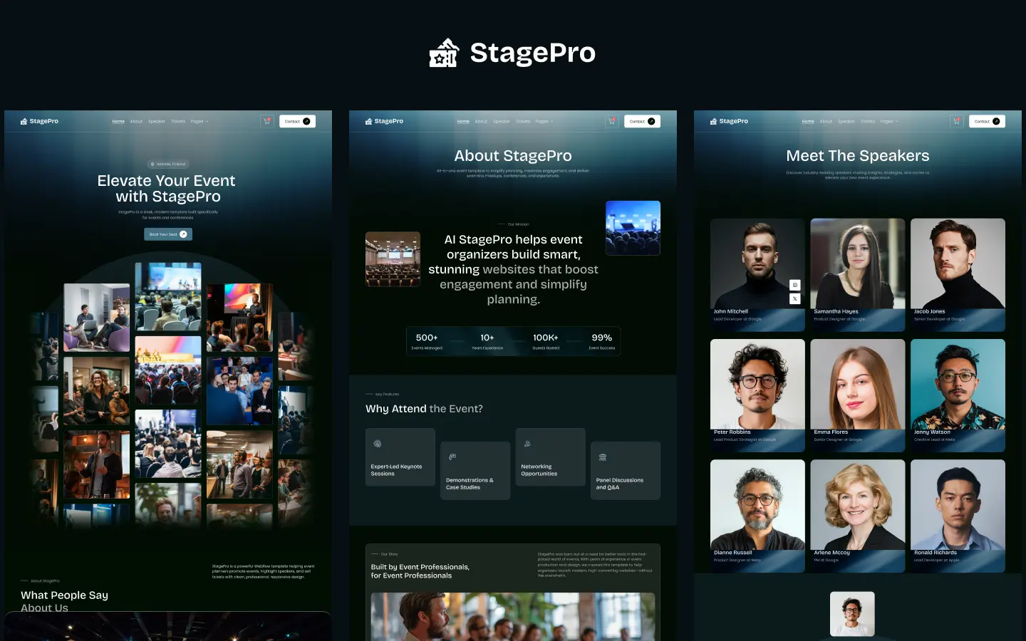 StagePro is a sleek and modern Webflow template designed for events, conferences, festivals, workshops, and summits of all kinds. It’s built to help organizers and event teams launch a professional, conversion-focused website in hours — not weeks.