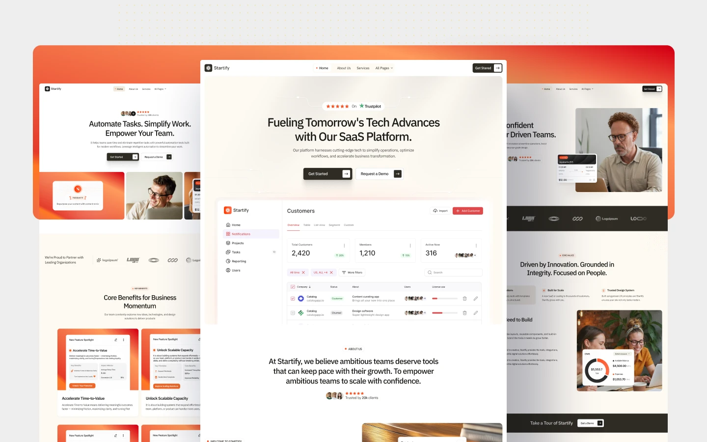 Startify is a modern, conversion-ready startup Webflow template with CMS support, built for tech startup teams to launch fast, manage content easily, and scale confidently with a clean, high-performance design.