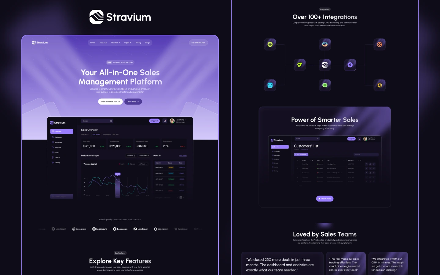 With responsive UI layouts, bold typography, beautifully structured sections, and smooth interactions, Starvium ensures your brand looks professional across every device. Built with performance, clarity, and growth in mind, this template turns your product into a compelling digital experience.