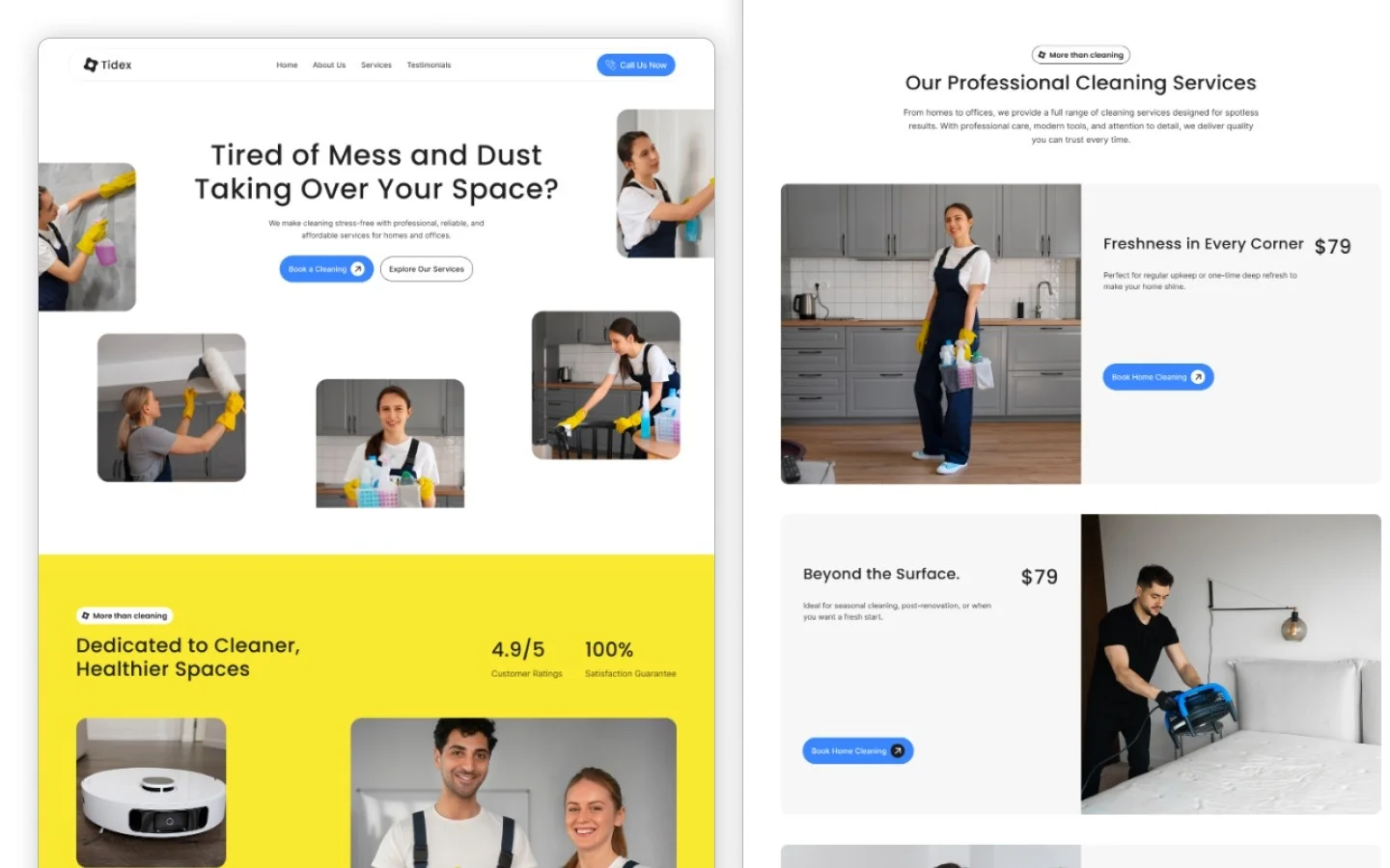 Tidex is a clean, modern Webflow template built for home services and maintenance businesses. Featuring a light theme, responsive design, and easy customization, it helps you showcase services clearly and convert visitors into leads.