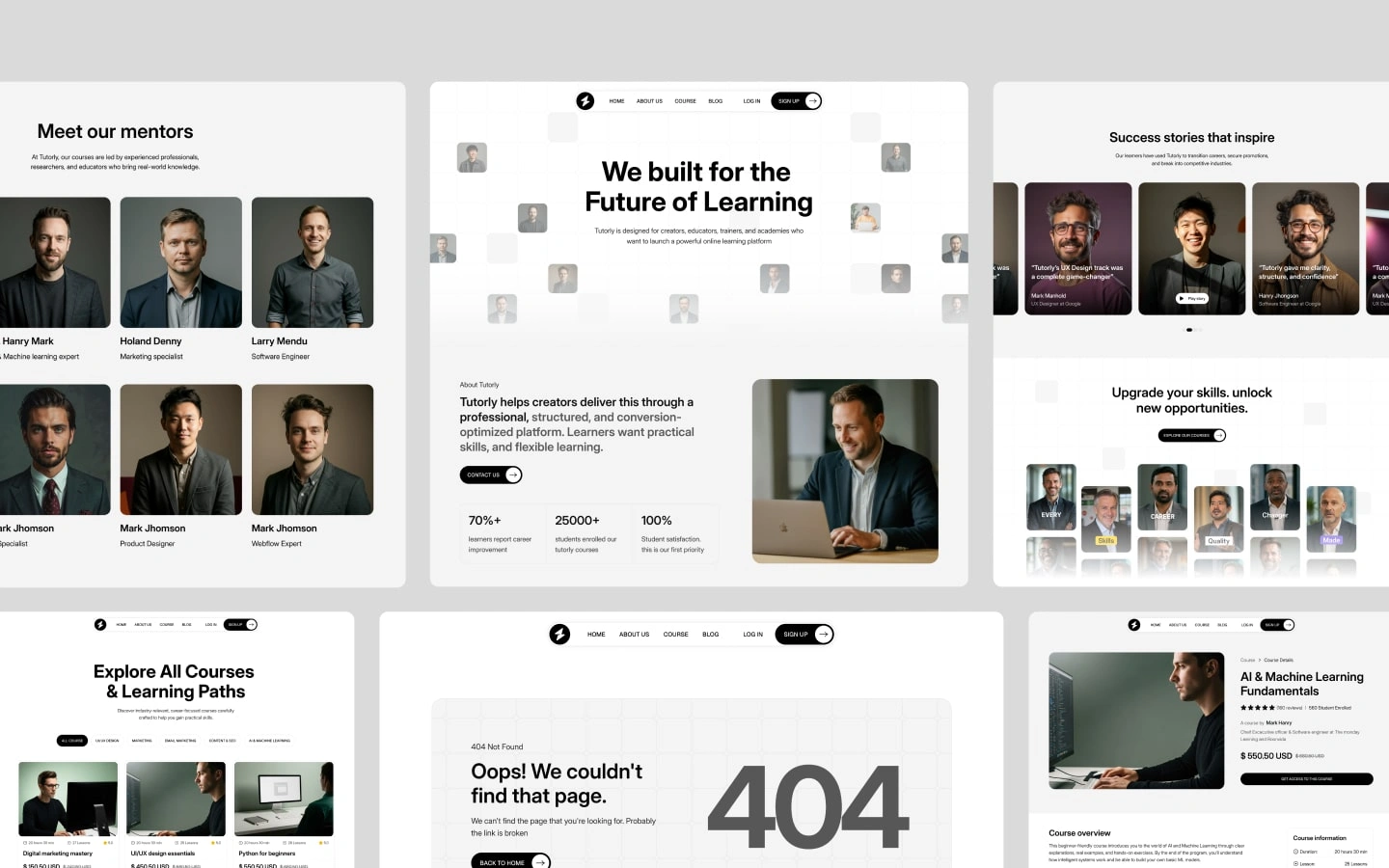 Tutorly is a premium online course selling website template designed for course creators, academies, bootcamps, and edtech startups. It mirrors the structure of real LMS platforms while remaining easy to manage and customize. Every page is built to communicate credibility, learning outcomes, and professional delivery.