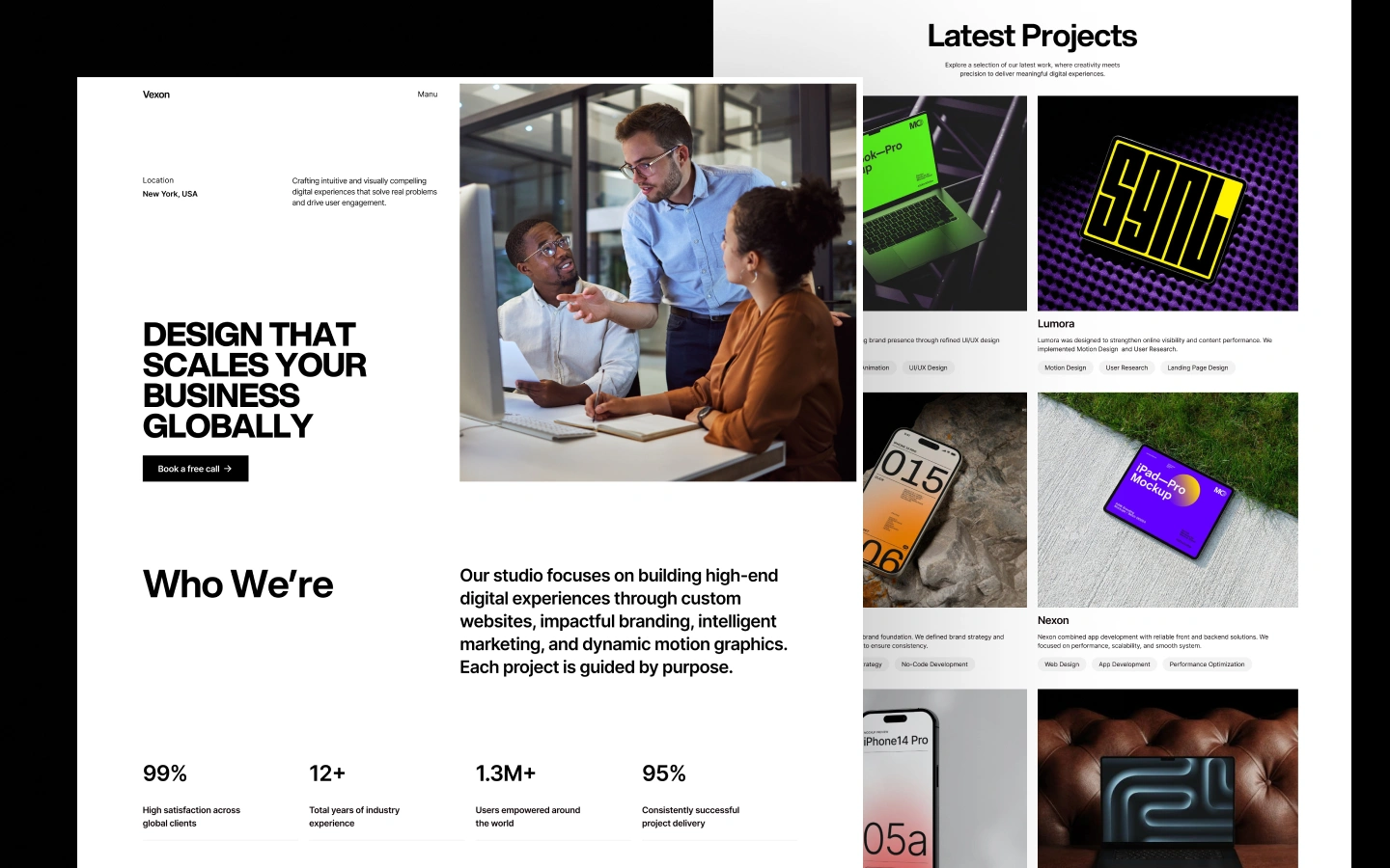 Meet Vexon - A polished and elegant Webflow Agency website template. This template, which is perfect for designers, developers, photographers, and other creatives, elegantly and simply displays your work.