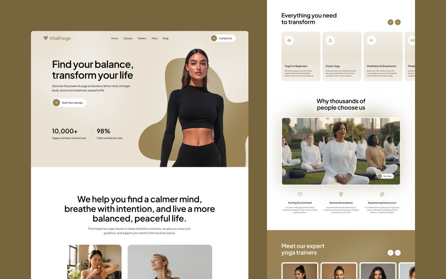Elevate your fitness brand with VitalForge. A premium Webflow template for gyms, yoga studios, and wellness centers. It features a bold, modern design with seamless responsiveness and high-performance layouts to convert visitors into members.