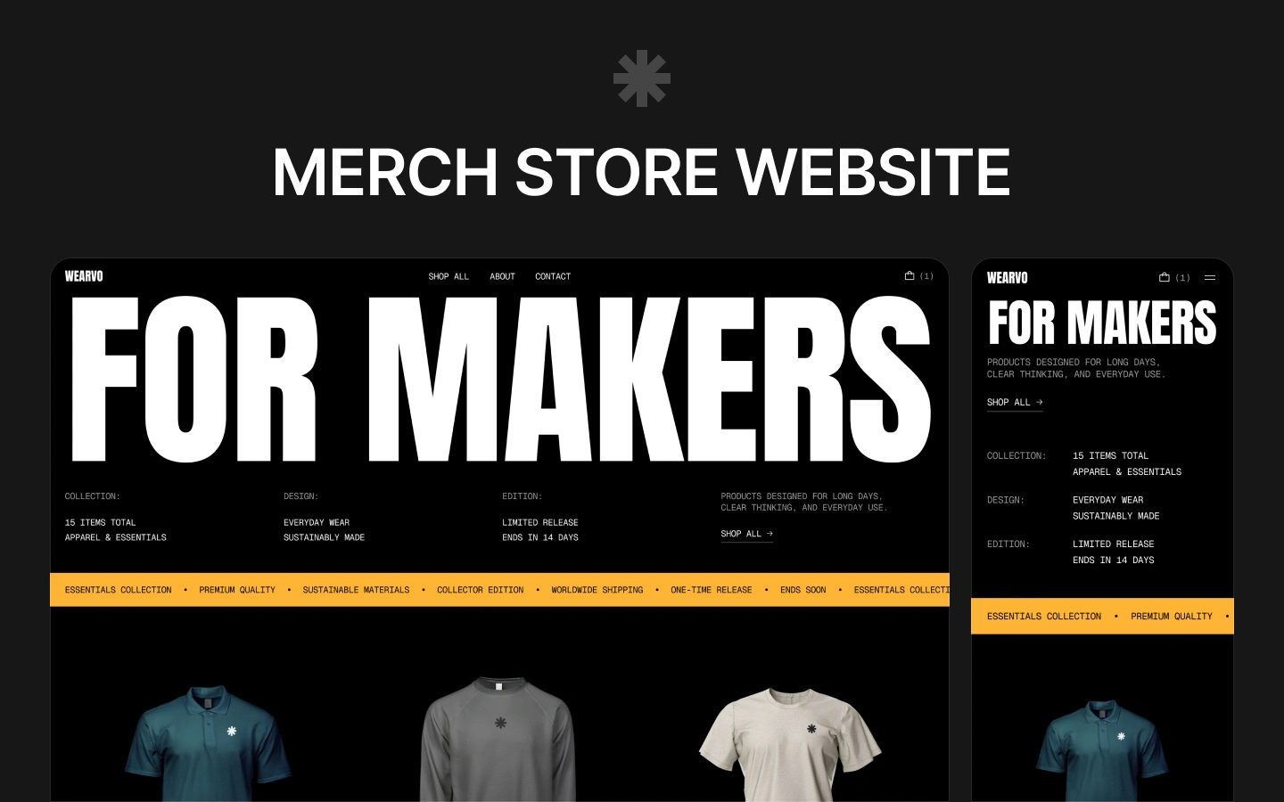 Wearvo is designed for teams and individuals who care about how their products and brand are presented. It works equally well for startup merchandise, creator-led products, or small branded collections, keeping the focus on what matters most – clear communication and strong product presentation.
